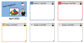 Hier gibt es Tagebuch-Vorlagen für den BookCreator. Für jeden Monat eines. Mit den Sign-Gebärden für Wochentage und Monate.